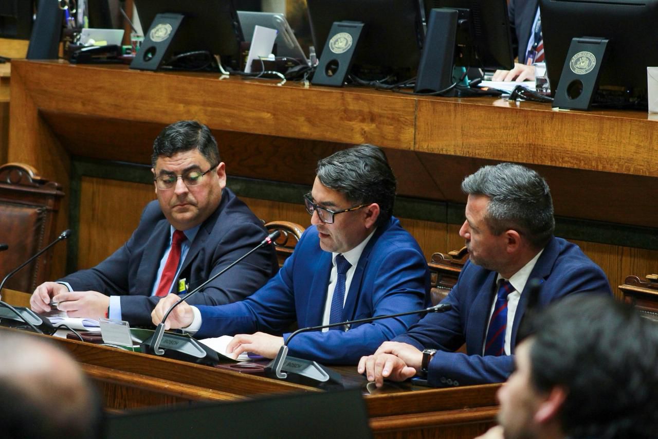 VALPARAÍSO.- El gobernador (s) del Maule, Luis Verdejo, junto al alcalde de Río Claro y presidente de la Asociación de Municipalidades Urbanas y Rurales del Maule (AMUR), Américo Guajardo; y el jefe de la División de Presupuesto e Inversión Regional, Cristian Arellano, participaron este lunes en una jornada de trabajo en el Congreso Nacional en el marco de la discusión del Presupuesto 2026 para los Gobiernos Regionales.