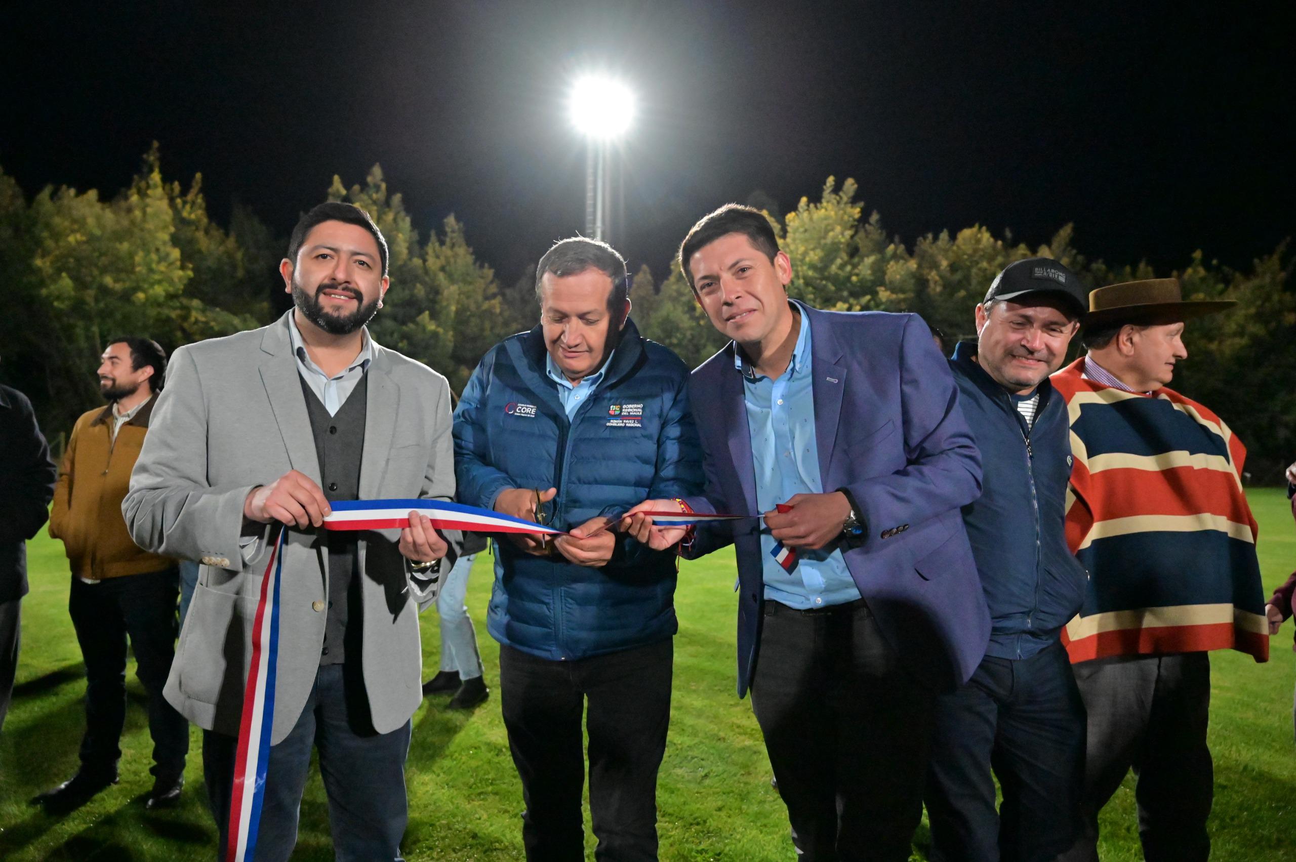 VICHUQUÉN.- Con el objetivo de fortalecer la cultura y el deporte en la comuna, el Gobierno del Maule junto a la municipalidad, inauguraron importantes obras: la reposición de las torres de iluminación del Estadio Municipal y el mejoramiento del Galpón del Club de Huasos.