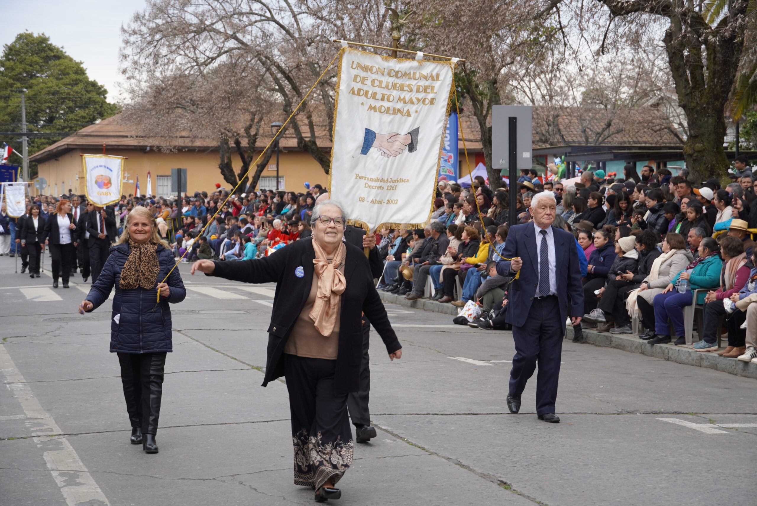 Escuelas, liceos, jardines infantiles, clubes deportivos, agrupaciones culturales, juntas vecinales y clubes de adulto mayor fueron parte del acto cívico que, como cada año, es esperado de manera especial por las familias molinenses.